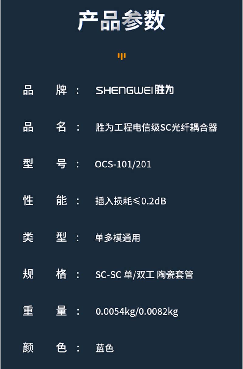 商品名称:☆胜为 SHENGWEI OCS-201 光纤适配器 工程电信级 光纤耦合器法兰盘 SC-SC 光纤网络跳线延长对接头 SC双工