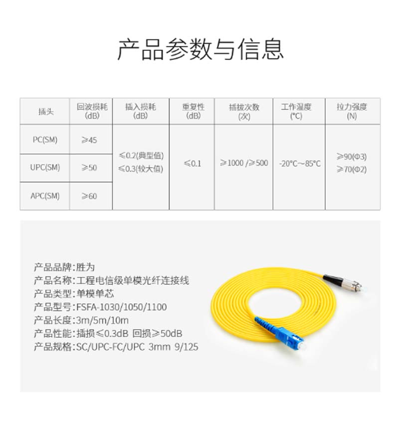 商品名称:☆胜为 SHENGWEI FSFA-1100 工程电信级光纤跳线 SC(UPC)-FC(UPC)单模单芯 10米