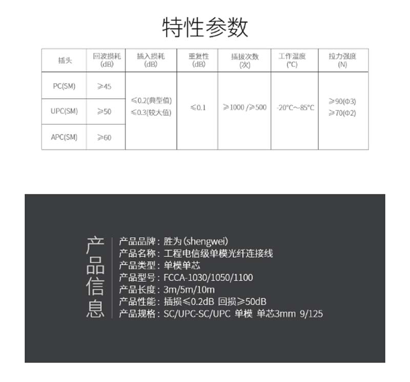 商品名称:☆胜为 SHENGWEI FCCA-1100 工程电信级光纤跳线 SC(UPC)-SC(UPC)单模单芯 10米