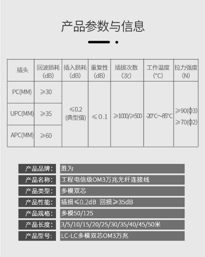 商品名称:☆胜为 SHENGWEI FLLO-1050 工程电信级万兆光纤跳线 5米 LC/UPC-LC/UPC OM3 多模双芯 尾纤 光模块专用