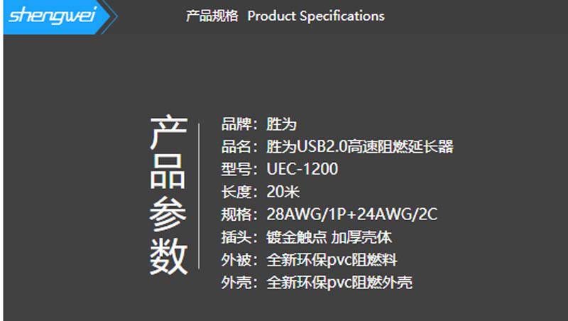 商品名称:☆胜为 SHENGWEI UEC-1200 工程级阻燃 USB2.0延长器 20米 带信号放大器 USB延长线 加强芯片无线网卡连接线