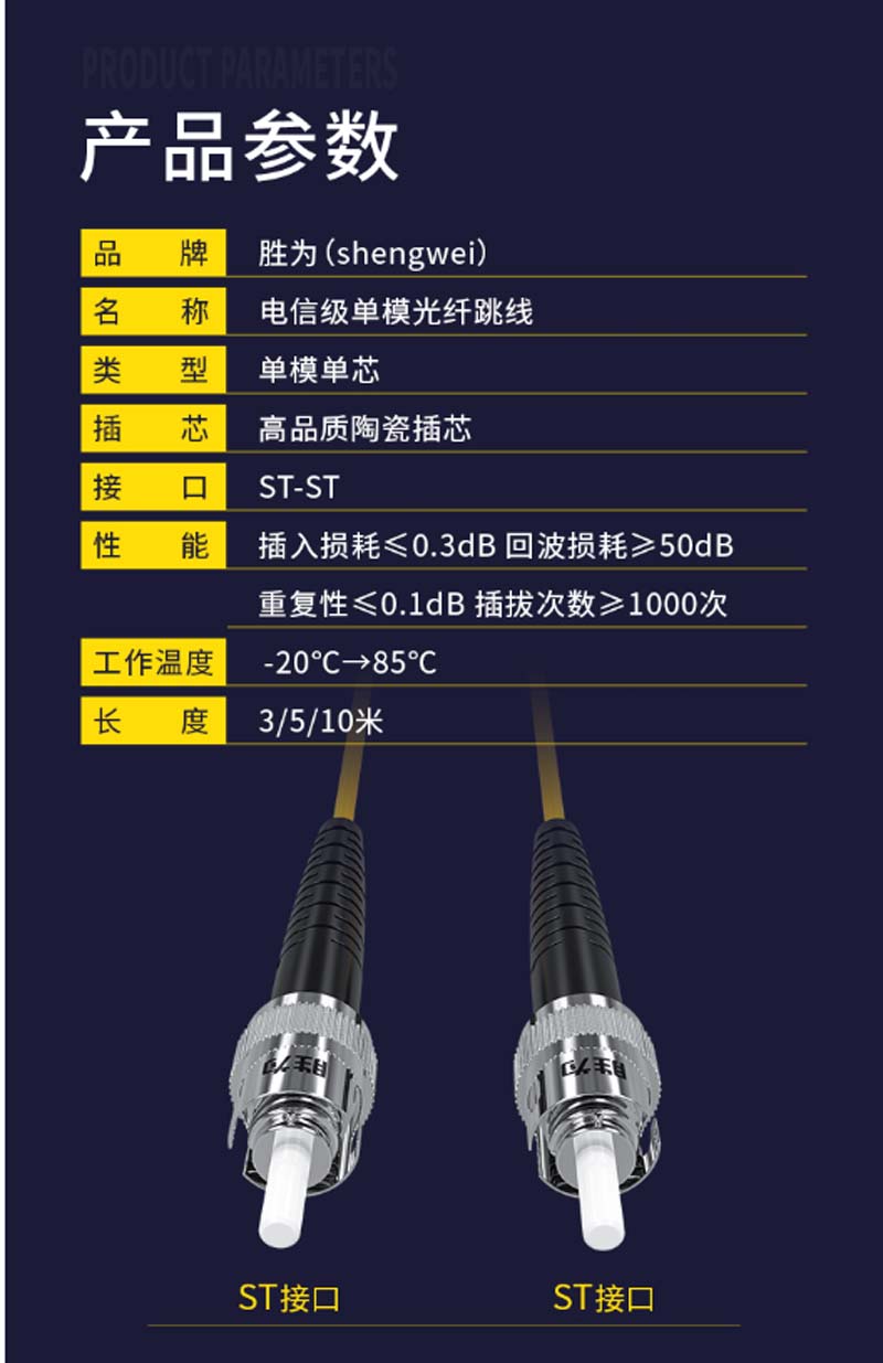 商品名称:☆胜为 SHENGWEI FSC-505 电信级光纤跳线 优质进口插芯 ST-ST单模单芯 收发器尾纤 10米