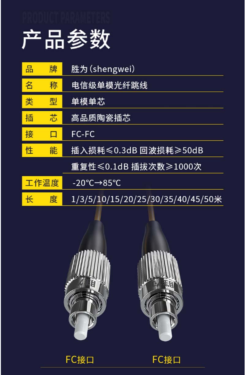 商品名称:☆胜为 shengwei FSC-503 电信级光纤跳线 优质进口插芯 FC-FC单模单芯 收发器尾纤 10米