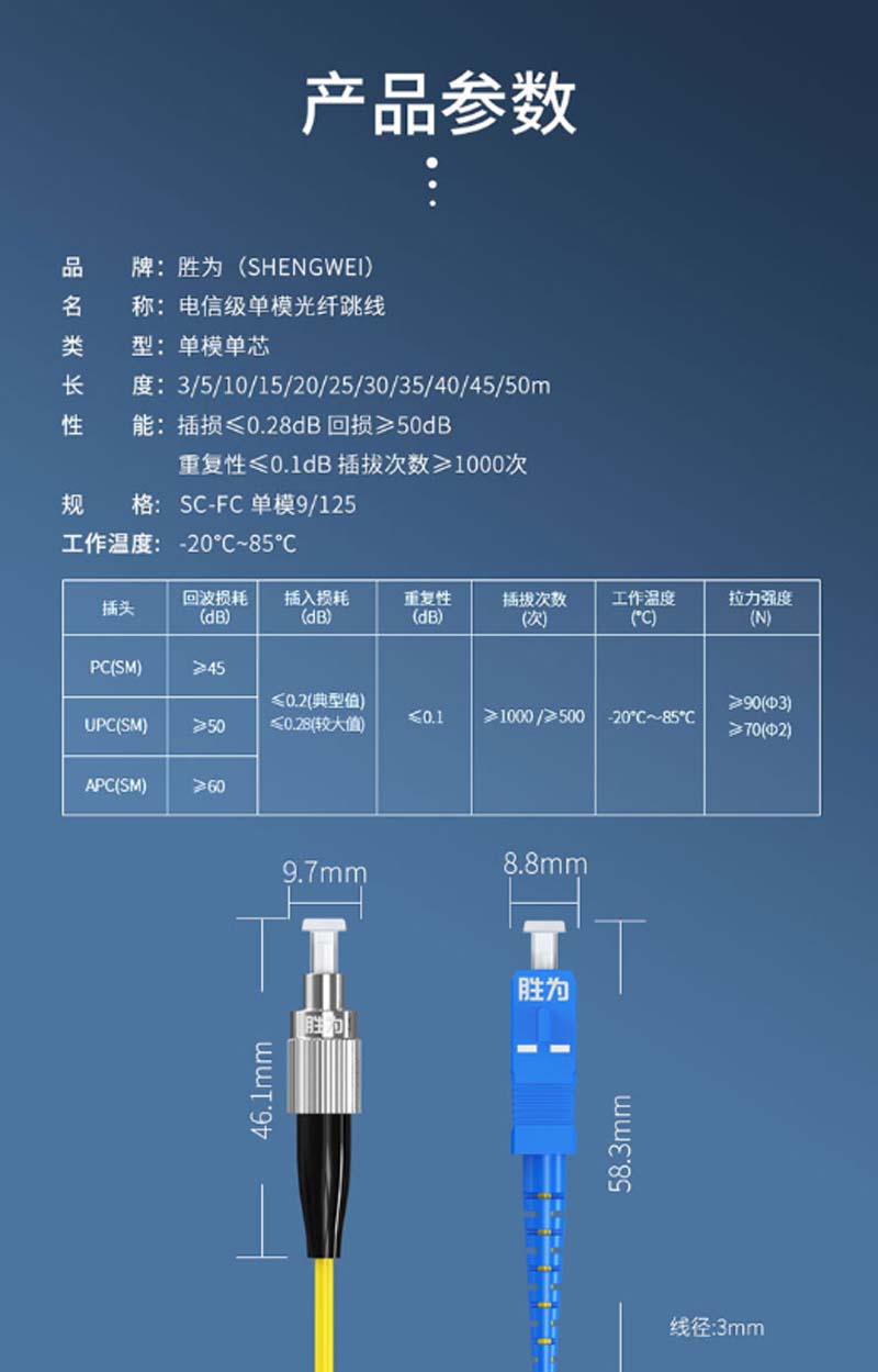 商品名称:☆胜为 SHENGWEI FSC-502 电信级光纤跳线 优质进口插芯 SC-FC单模单芯 收发器尾纤 10米