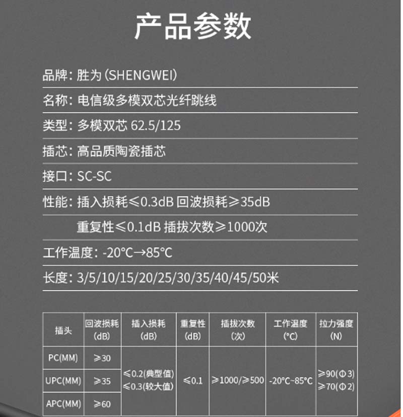 商品名称:☆胜为 SHENGWEI FMC-601 电信级光纤跳线 优质进口插芯 SC-SC多模双芯 收发器尾纤 10米