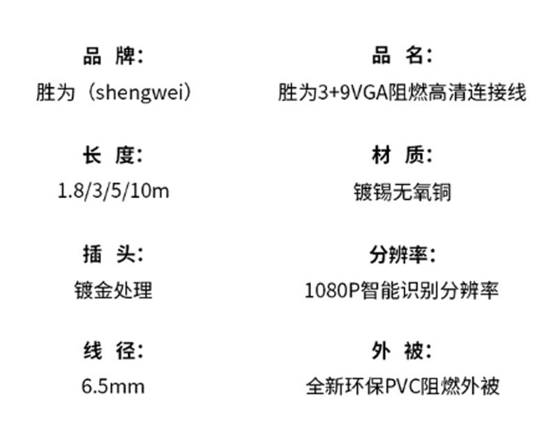 商品名称:☆胜为 SHENGWEI VC-6050 3+9阻燃VGA高清信号连接线 5.0M