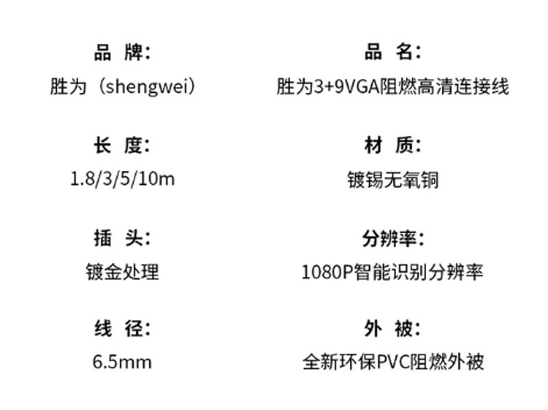 商品名称:☆胜为 SHENGWEI VC-6030 3+9阻燃VGA高清信号连接线 3.0M