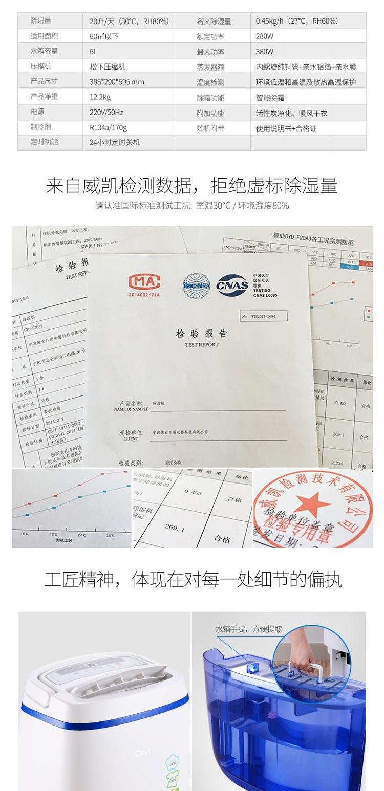 商品名称:德业 家用静音抽湿机除湿器 DYD-F20A3