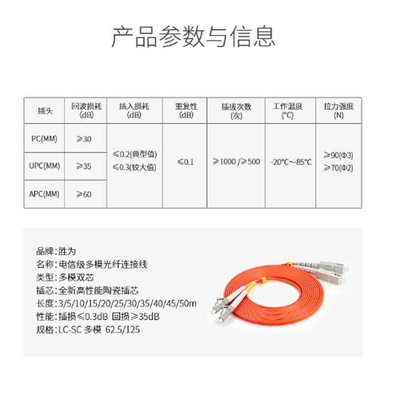 商品名称:☆胜为 SHENGWEI FMC-2005 电信级光纤跳线 LC-SC多模双芯尾纤45米/对 交换机/光纤盒连接线