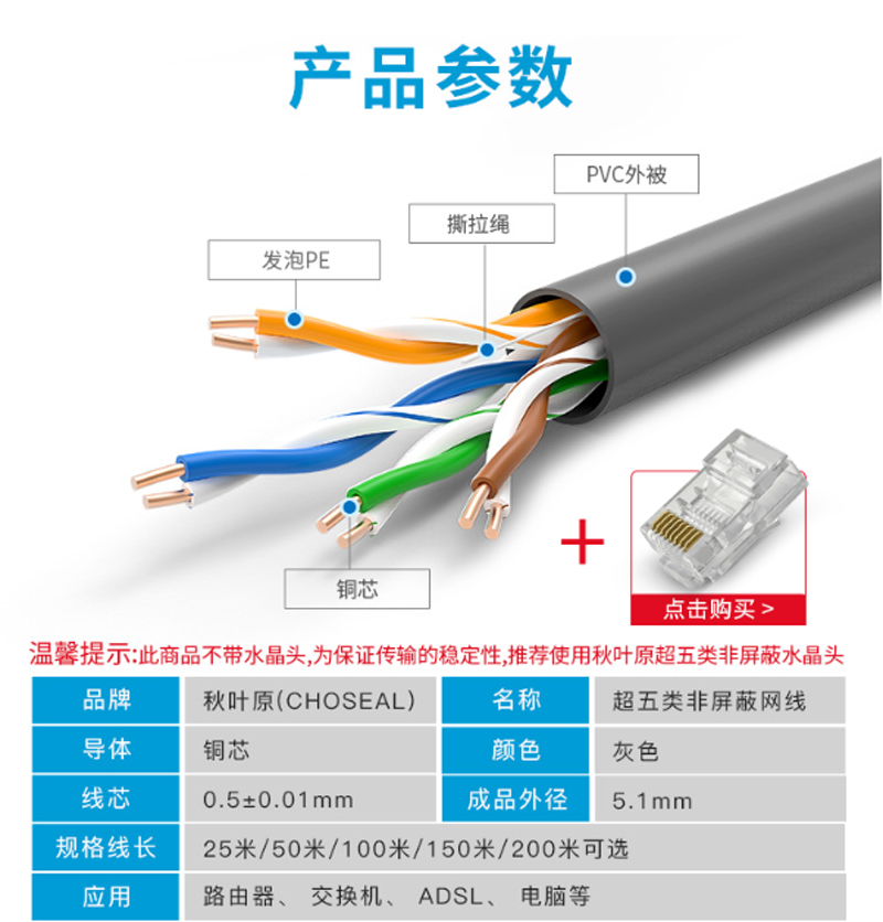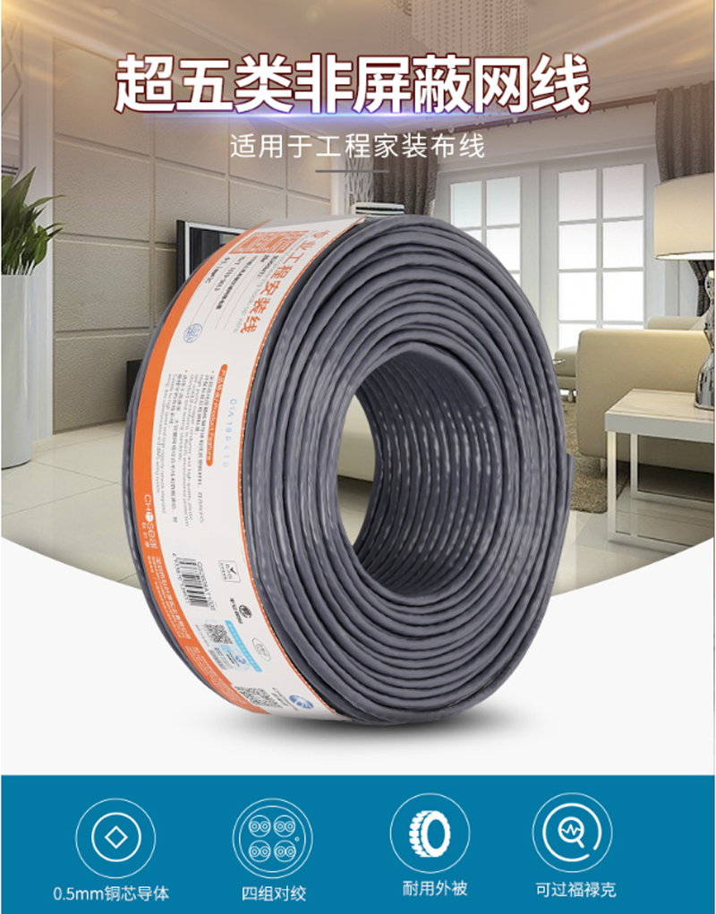 商品名称:☆秋叶原 CHOSEAL 原装超五类网线 非屏蔽 纯铜线芯 高速网线 工程家装专用网线 灰色 25米 QS2608AT25S
