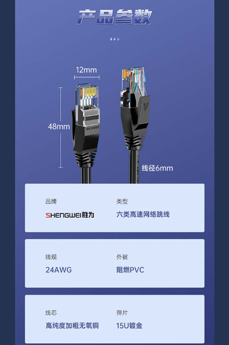☆胜为 SHENGWEI LC-6100G 六类网络跳线 纯铜千兆8芯双绞 10米 黑色