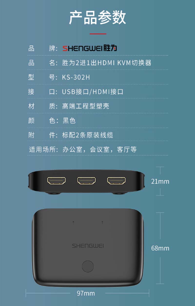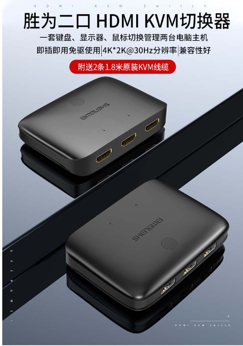 ☆胜为 SHENGWEI KS-302H KVM切换器2口二进一出原装线