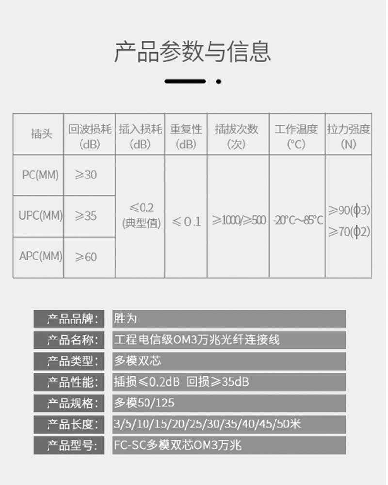 商品名称:☆胜为 SHENGWEI FSFO-1030 电信级万兆光纤跳线 SC-FC网线多模双芯OM3 3米