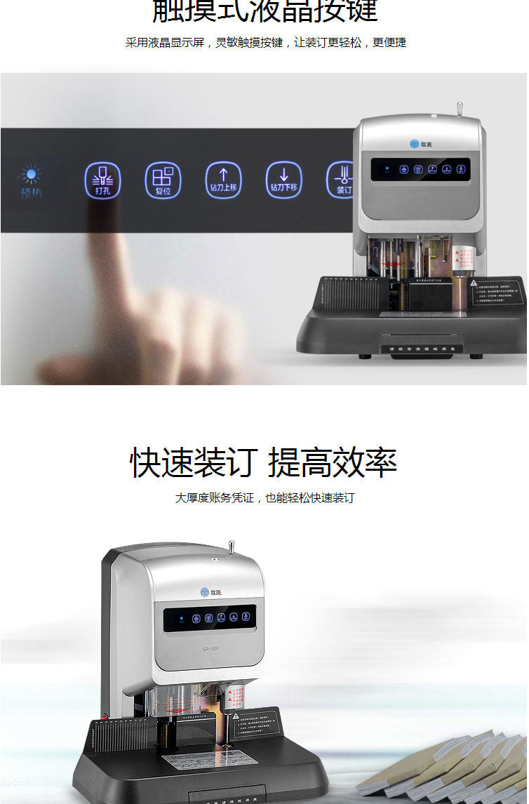 ☆歌派 GEPAD GP-50P 自动财务凭证装订机 激光定位文件档案快速打孔机 液晶触摸语音提示