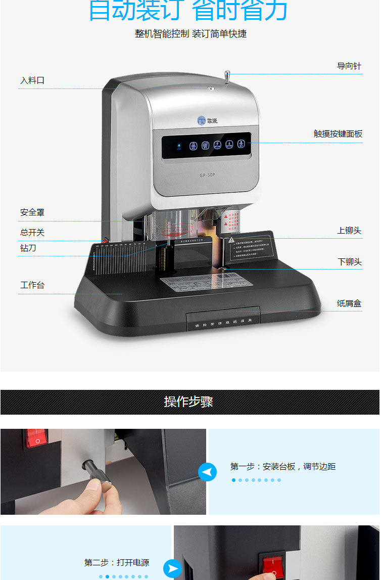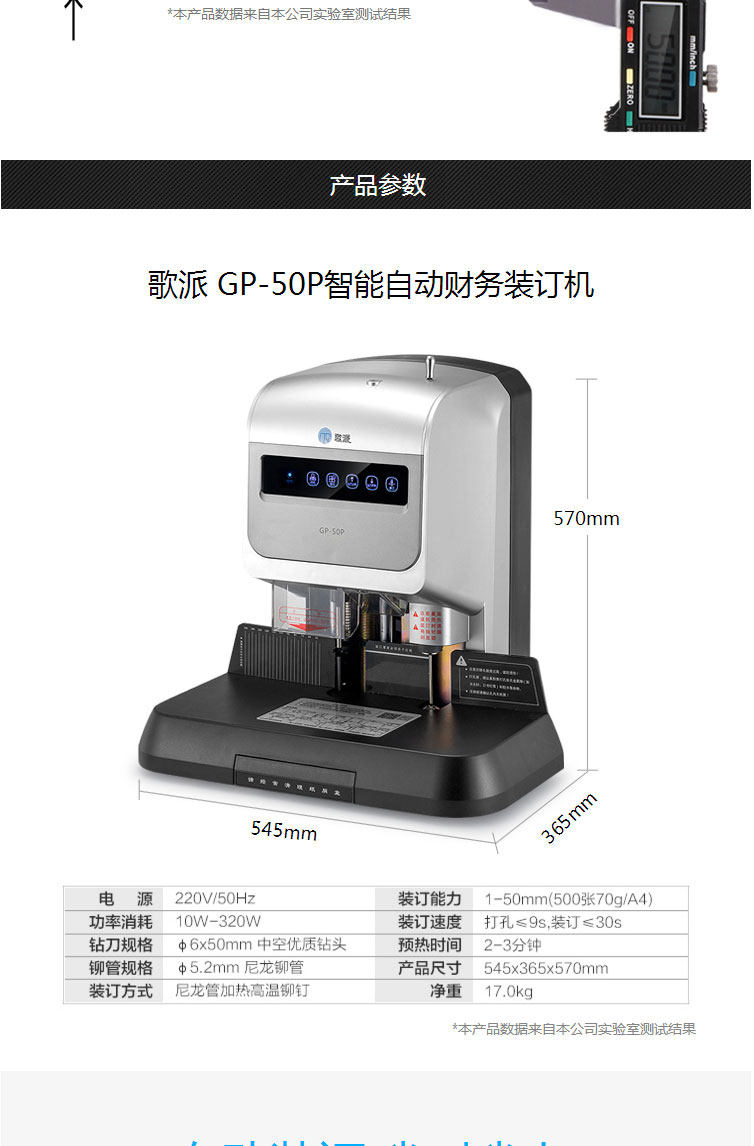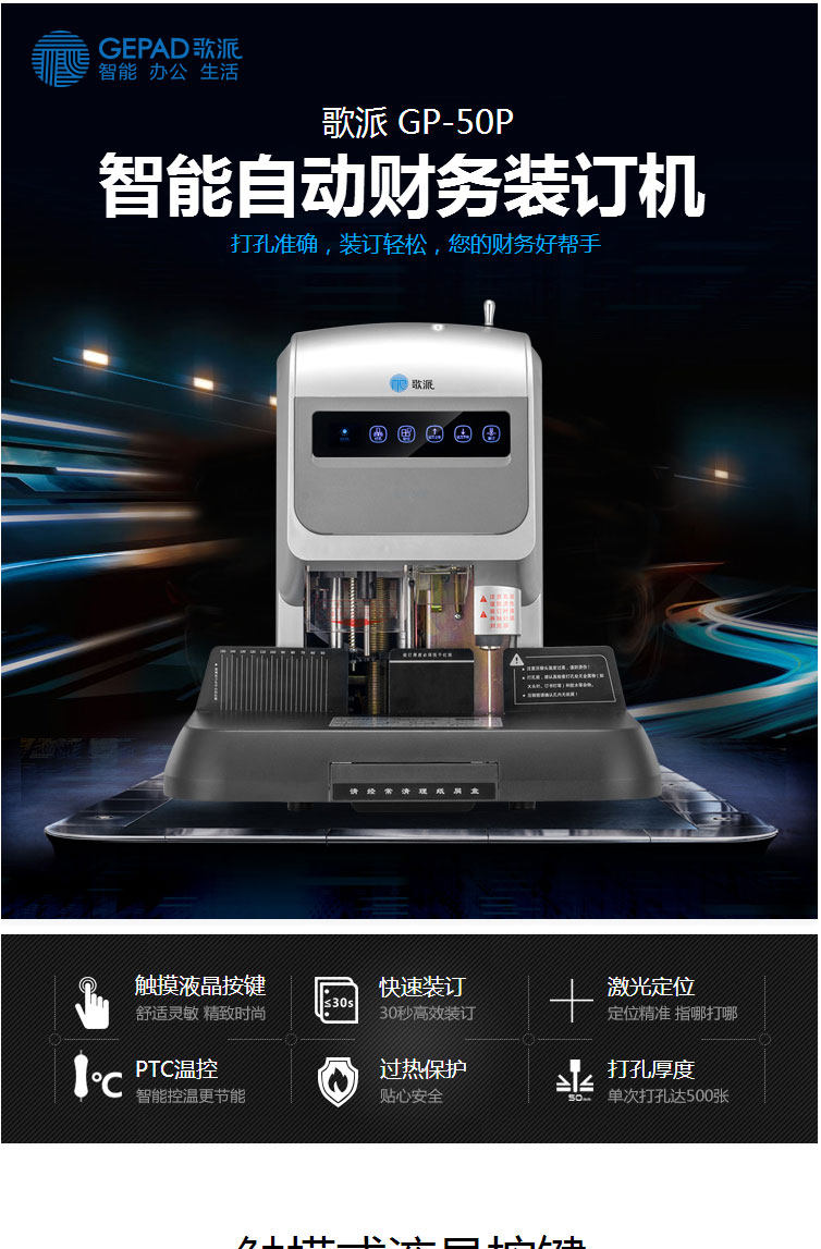 商品名称:☆歌派 GEPAD GP-50P 自动财务凭证装订机 激光定位文件档案快速打孔机 液晶触摸语音提示