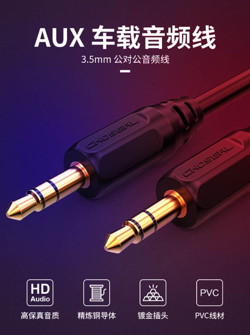 商品名称:☆秋叶原 CHOSEAL QS3210AT2 音频线 3.5对3.5 汽车AUX线 2米