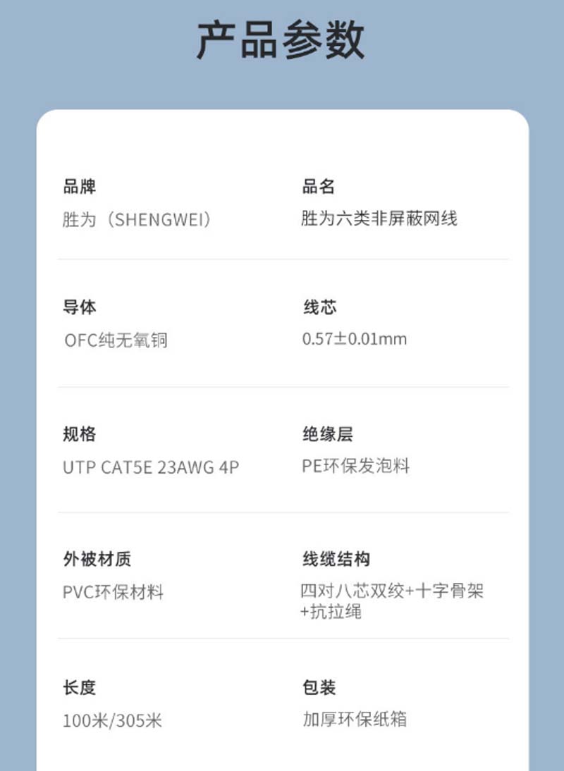 ☆胜为 shengwei CLC-6305 福禄克测试 工程阻燃六类千兆网线 高速纯铜非屏蔽双绞线305米/箱 cat6电脑宽带线