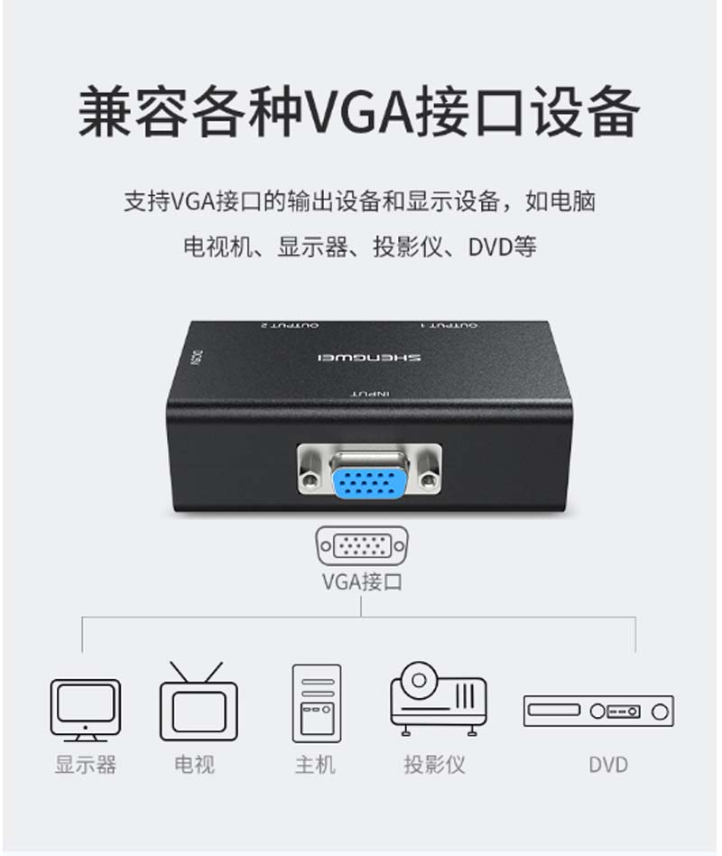 ☆胜为 SHENGWEI VS-202 VGA分配器 一进二出 2口共享器