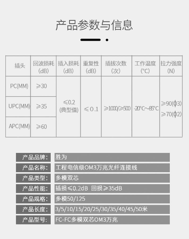 商品名称:☆胜为 SHENGWEI FFFO-1400 40米 多模双芯OM3 万兆光纤跳线