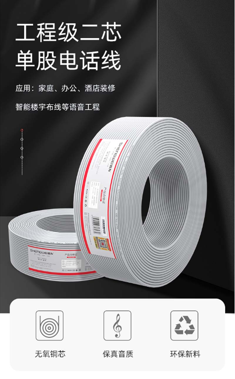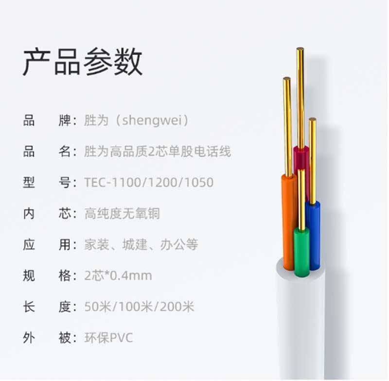 商品名称:☆胜为 SHENGWEI TEC-1050 电话线2芯单股无氧铜线芯 0.4MM
