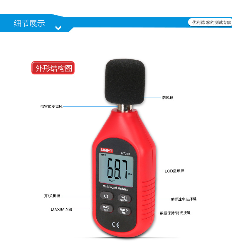 商品名称:优利德 噪音计 声级计 噪音仪 分贝仪 噪声音量测试器 UT353