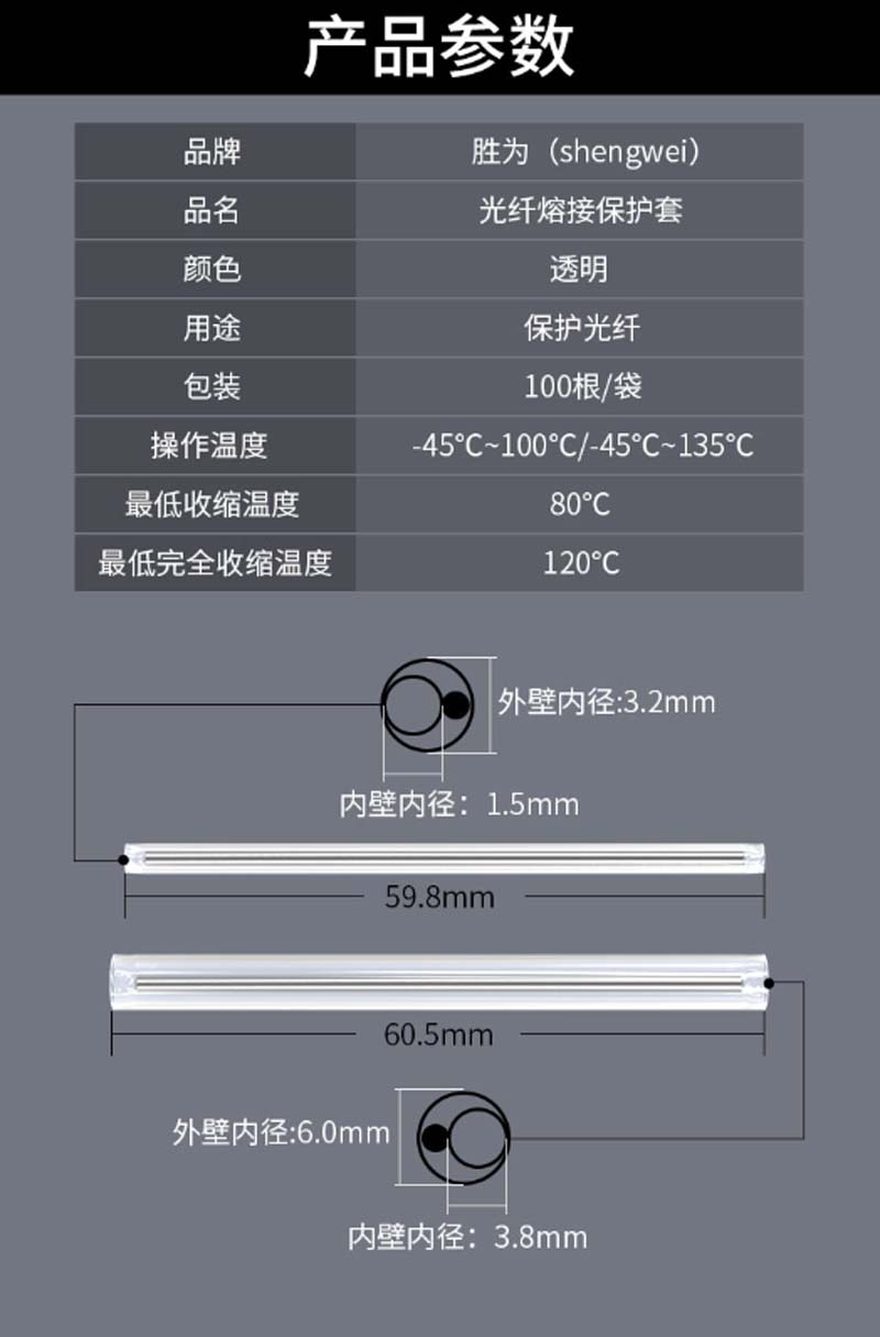 商品名称:☆胜为 SHENGWEI PS-1015 单针裸光缆皮纤尾纤单芯熔接管热缩套 100根