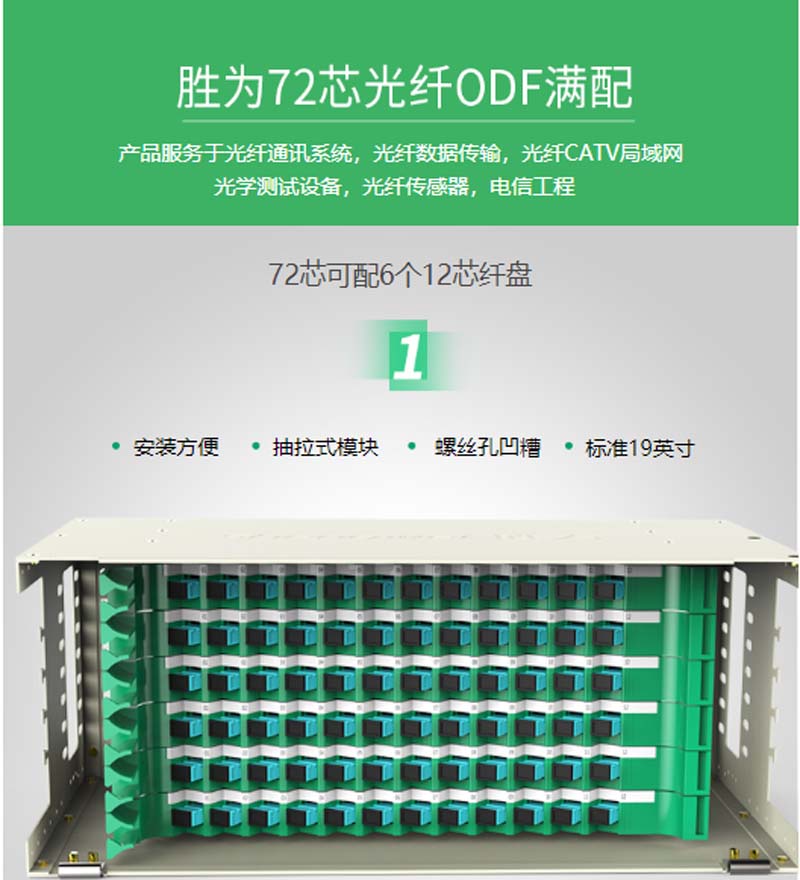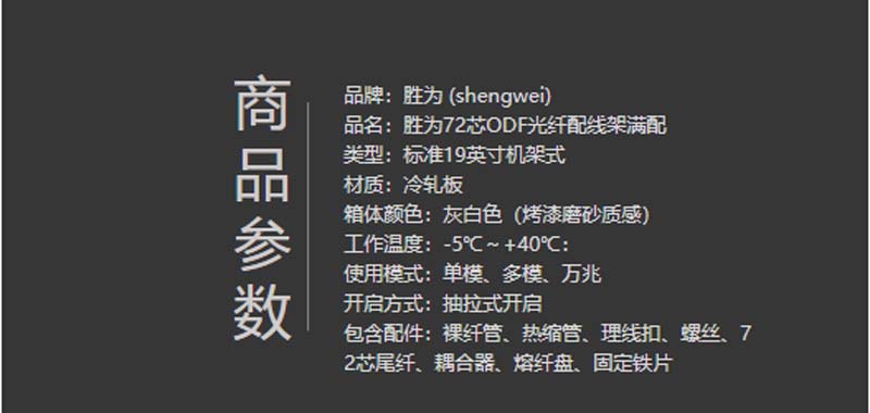 商品名称:☆胜为 SHENGWEI ODF-1072S-S 72芯ODF光纤配线架SC单模满配 19英寸 灰白色