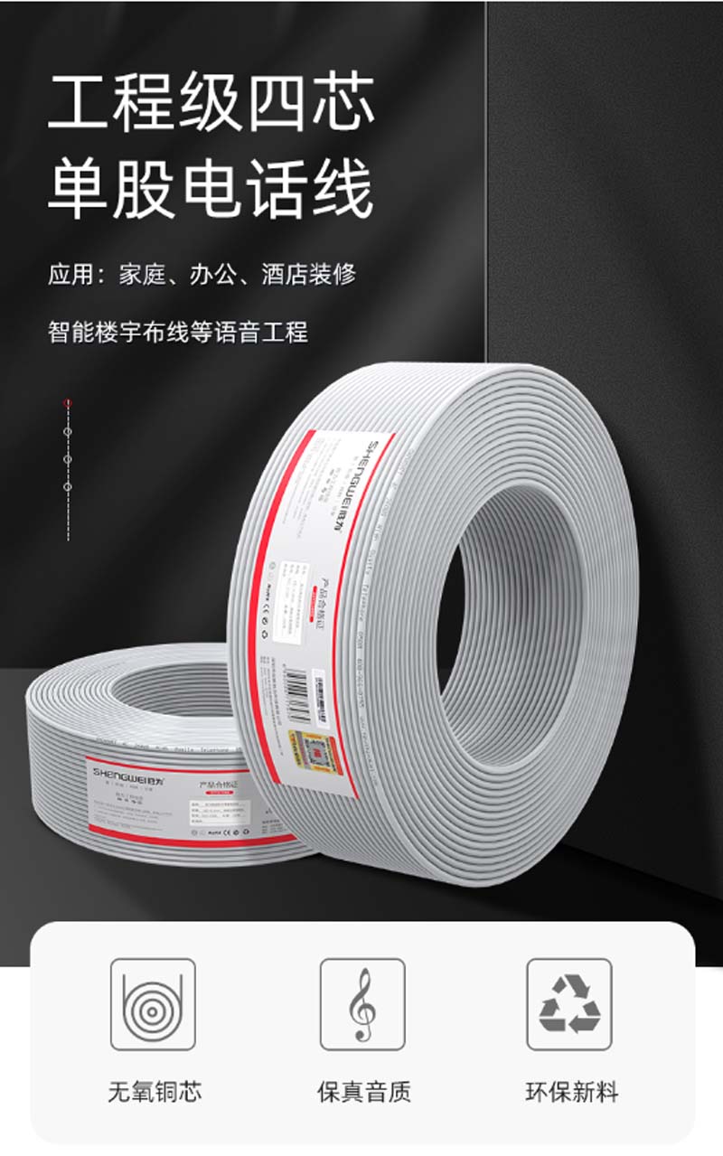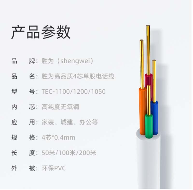 商品名称:☆胜为 SHENGWEI TEC-2100 电话线4芯单股无氧铜线芯 0.4MM 100米