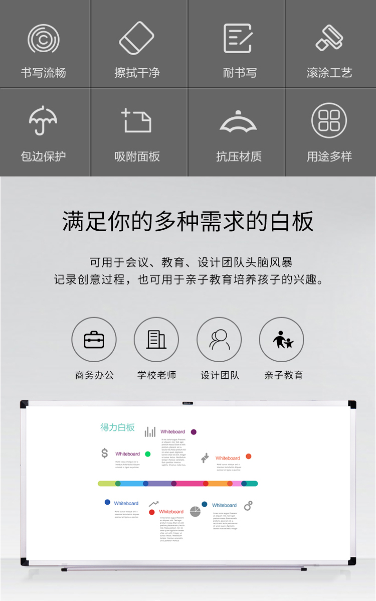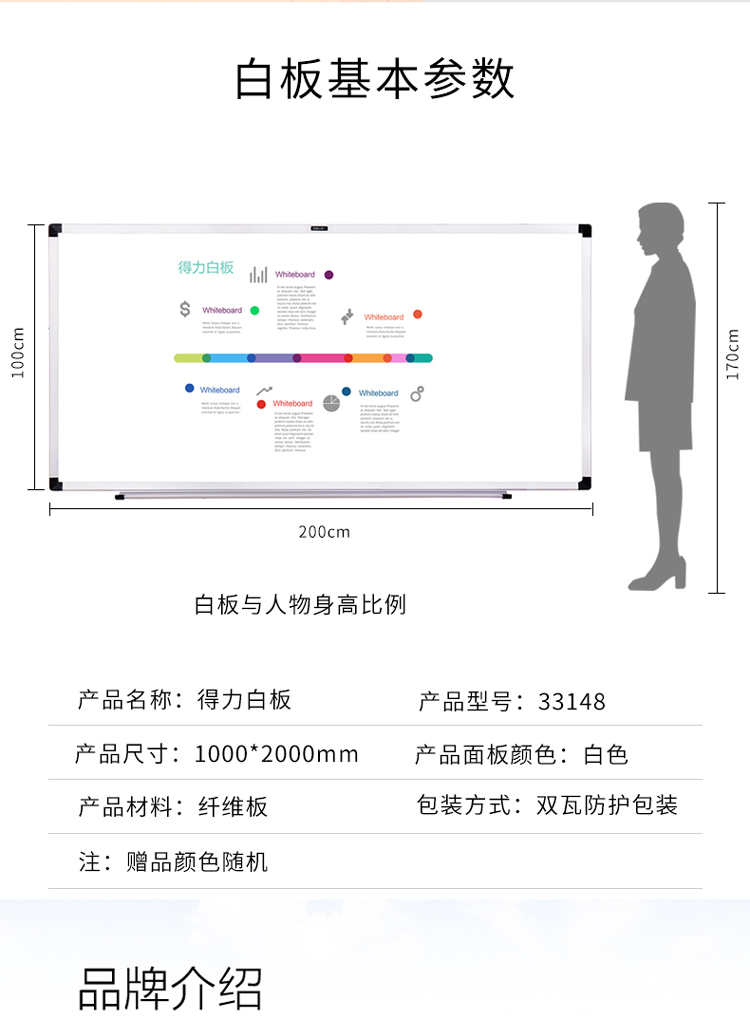 商品名称:☆得力 DELI 33148 白板 100×200CM 附赠白板擦+白板笔+磁钉