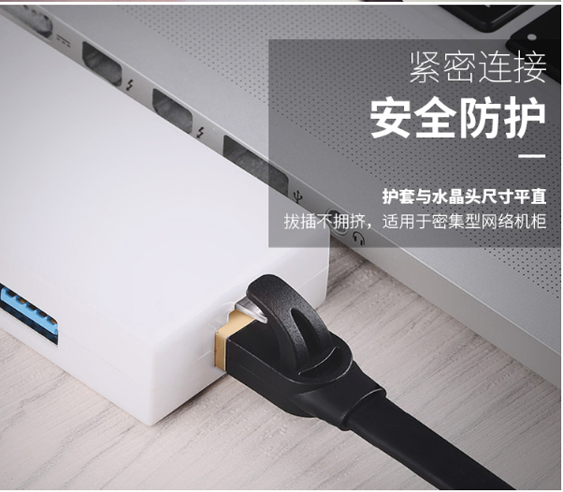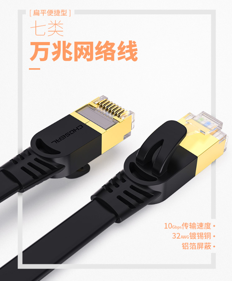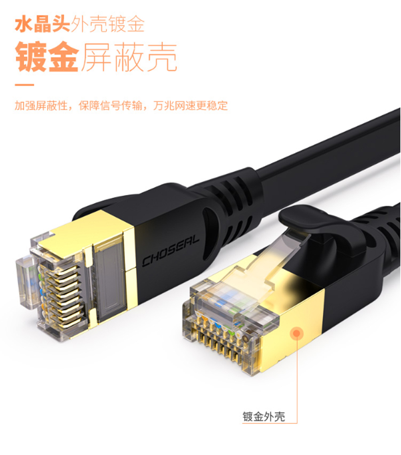 商品名称:☆秋叶原 CHOSEAL QS5178A 七类扁平网线(带镀金水晶头) 0.5米 黑色