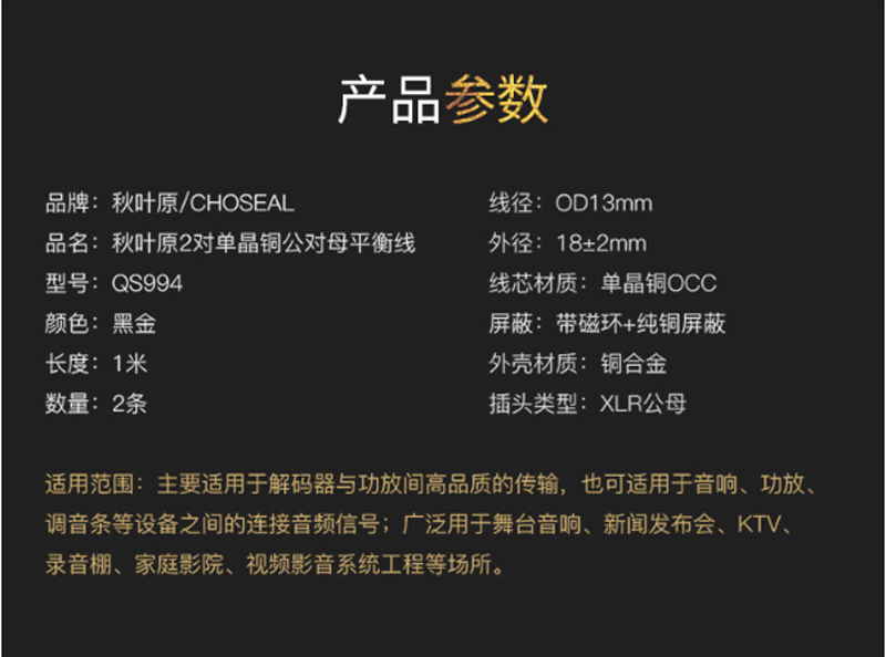 商品名称:☆秋叶原 CHOSEAL QS994T1 卡农线信号线 1.0米