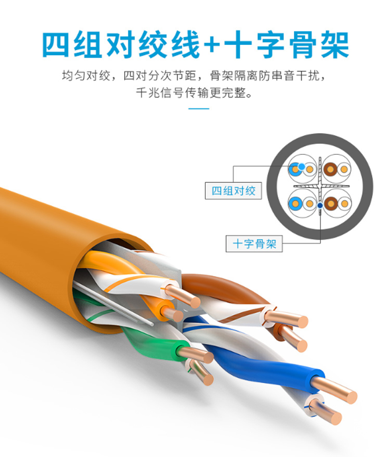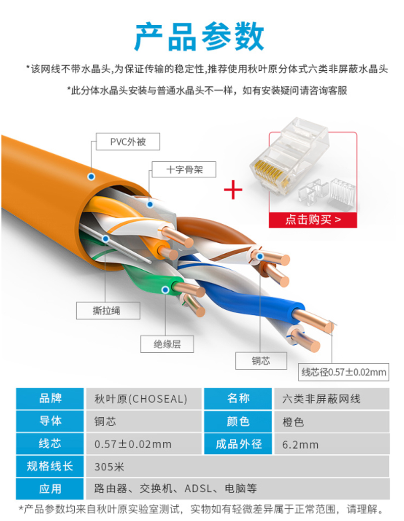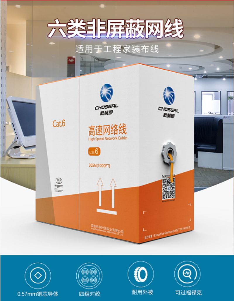 商品名称:☆秋叶原 CHOSEAL QS56CT305 六类非屏蔽千兆网线 国标0.57MM 专业箱装 305米 橙色