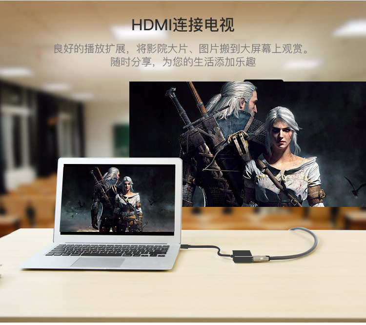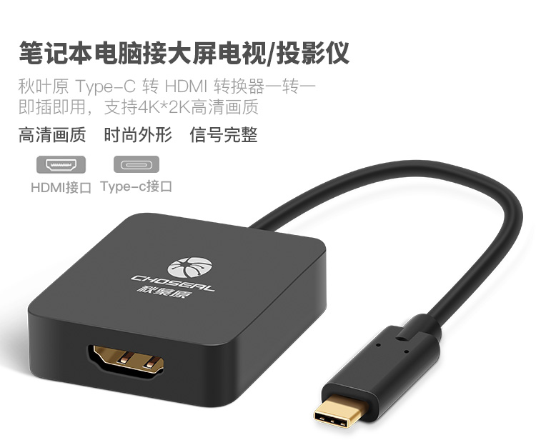 ☆秋叶原 CHOSEAL TYPE-C转HDMI高清转换器 支持USB-C口接电视4K高清视频QD6335