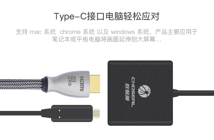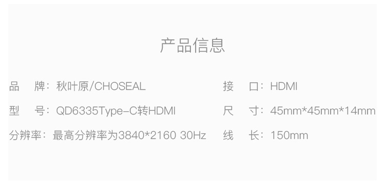 商品名称:☆秋叶原 CHOSEAL TYPE-C转HDMI高清转换器 支持USB-C口接电视4K高清视频QD6335