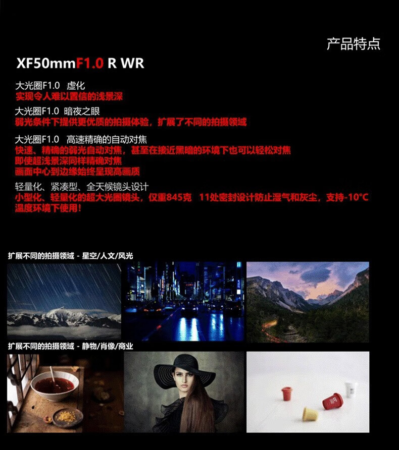 商品名称:☆富士 FUJIFILM XF 50MM F2 R WR 中长焦定焦镜头黑色高速AF时尚设计小巧轻便全天候保护