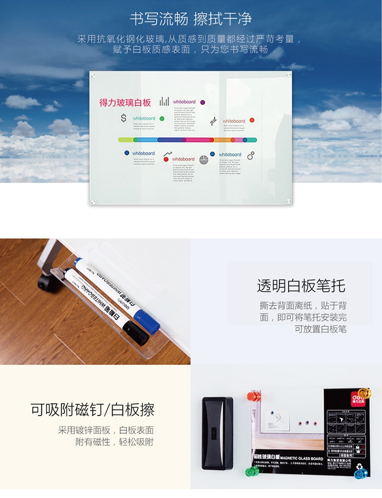商品名称:☆得力 DELI 8740 磁性钢化 1000MM*1500MM 悬挂式办公/会议玻璃白板
