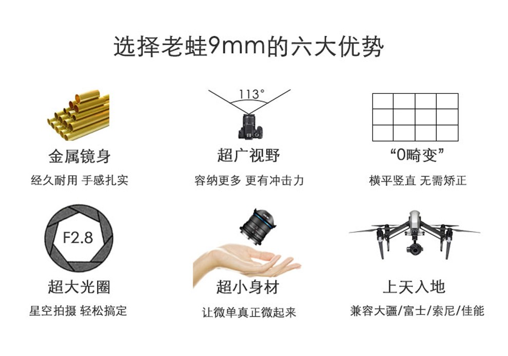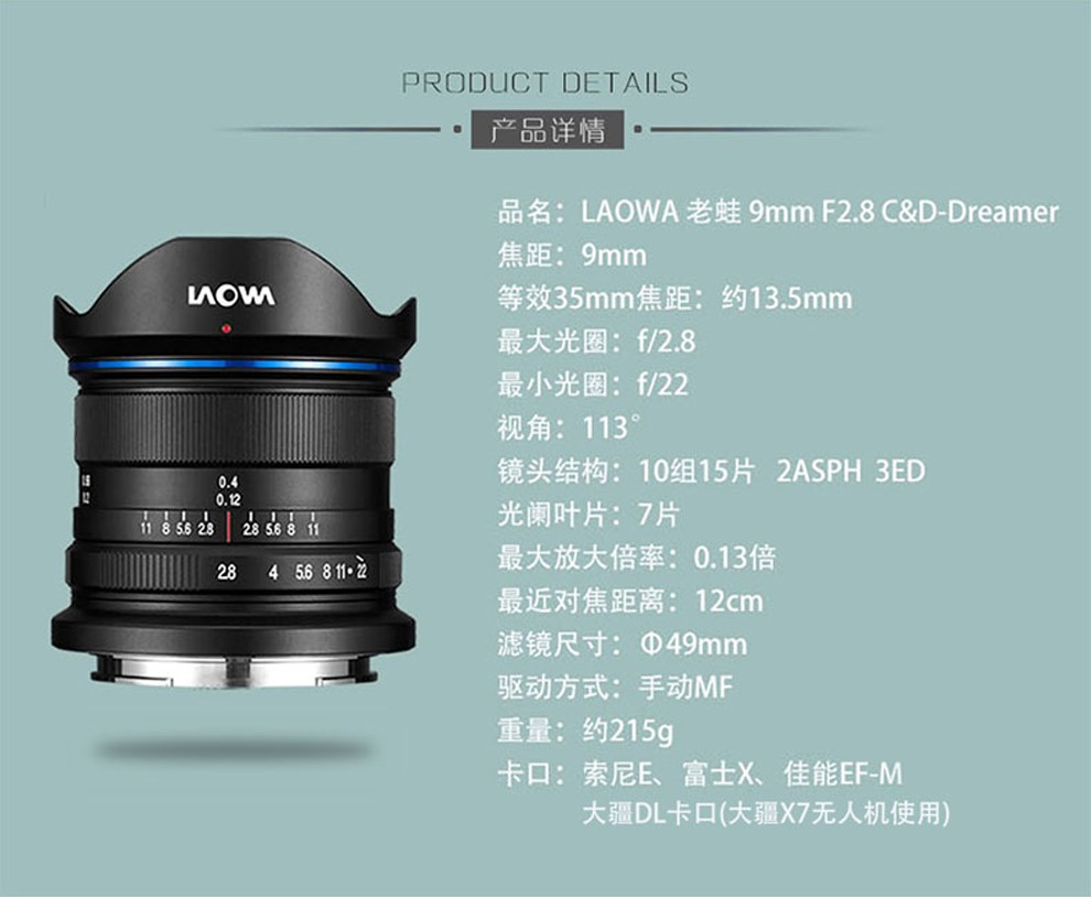 商品名称:☆老蛙 LAOWA 9MM F2.8 超广角大光圈无反交换式半画幅微单镜头 佳能 EF-M卡口