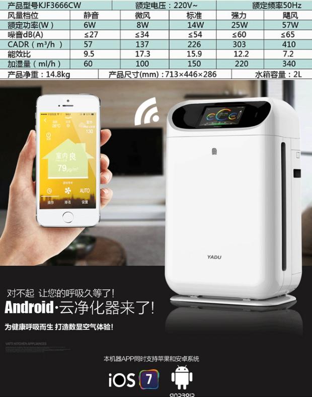 商品名称:亚都 空气净化器智能APP操控除甲醛雾霾加湿一体机 KJF3666CW