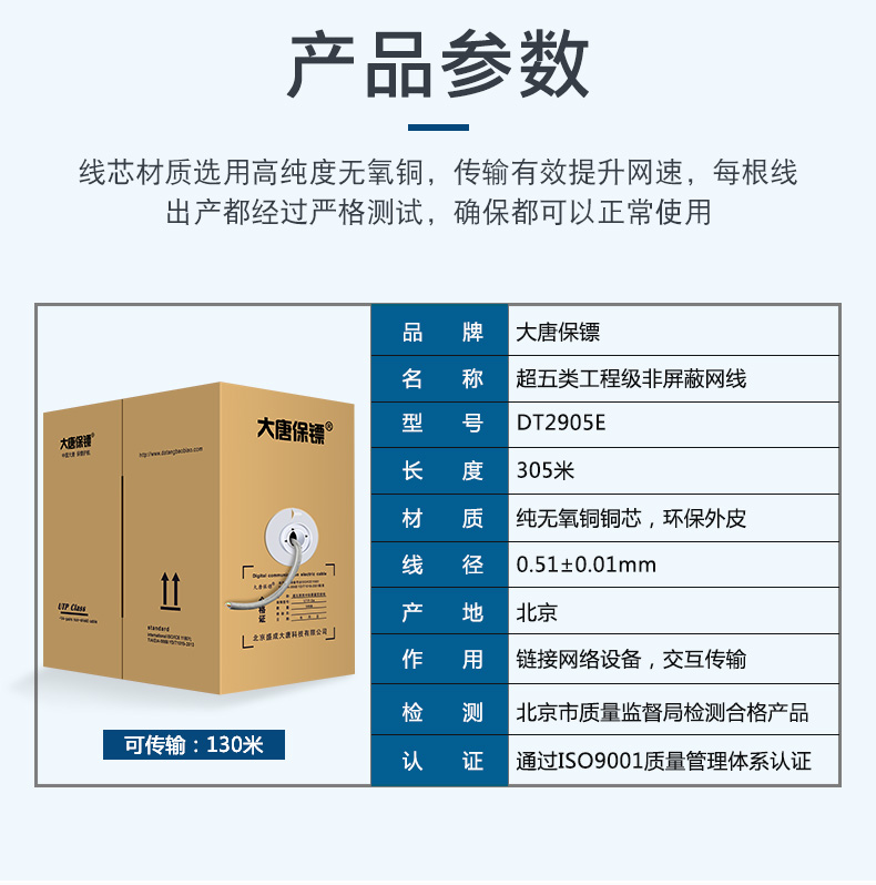 商品名称:☆大唐保镖 DT2905E 工程级 超五类网线 305米 整箱装