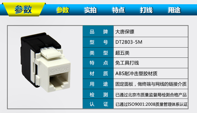 商品名称:☆大唐保镖 DT2803-5M 超五类模块