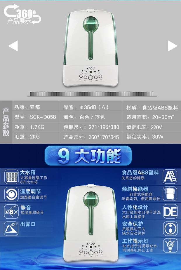 商品名称:亚都 加湿器创意大雾定时 SCK-D058