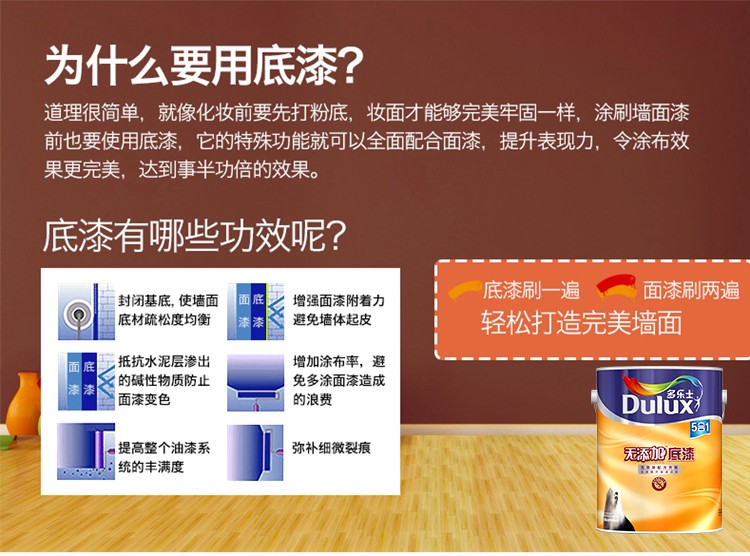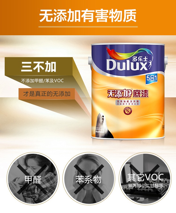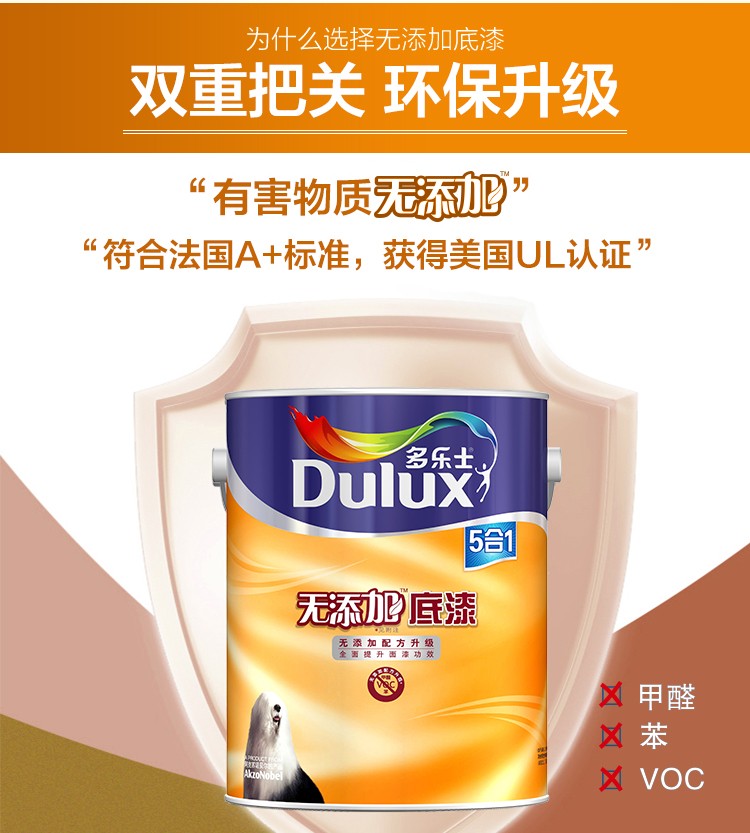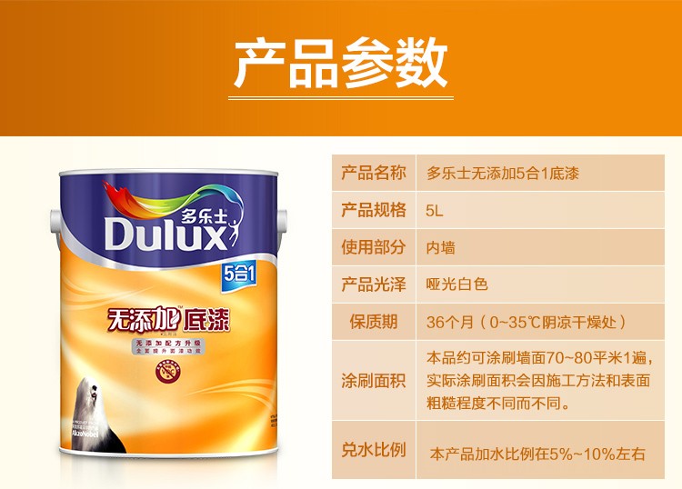商品名称:☆多乐士 DULUX A931-65833五合一无添加底漆内墙乳胶漆油漆涂料白色5L