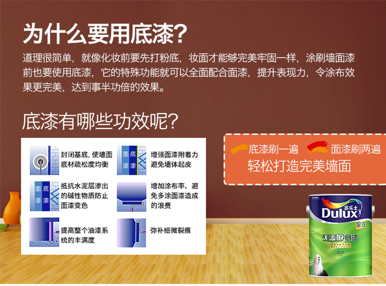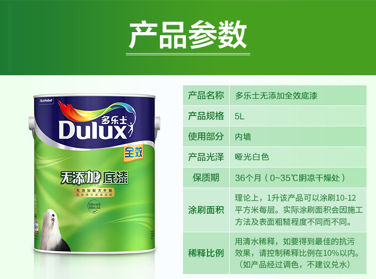 商品名称:☆多乐士 DULUX A931-65834全效无添加底漆内墙乳胶漆油漆涂料白色5L