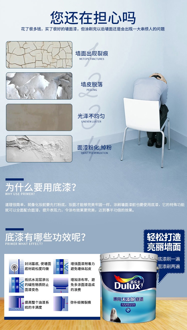 ☆多乐士 DULUX A931-65833五合一无添加底漆内墙乳胶漆油漆涂料白色5L