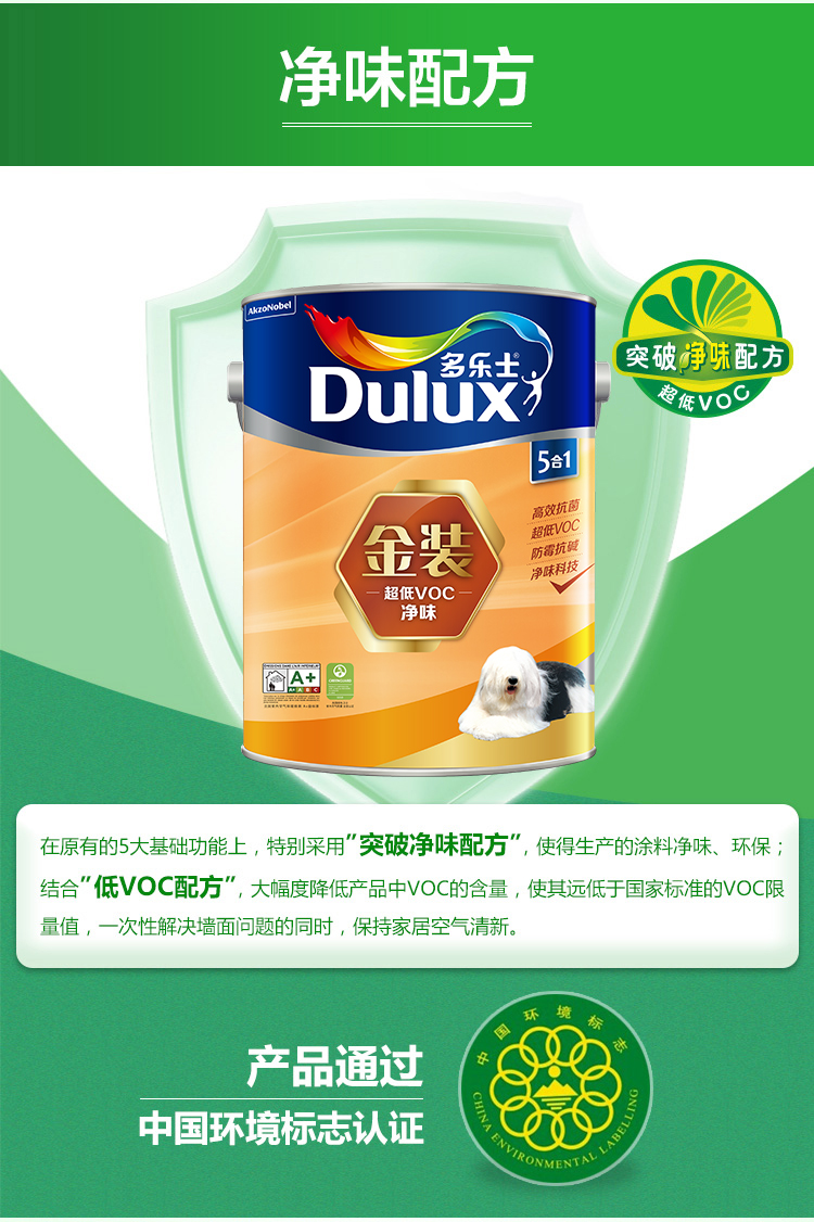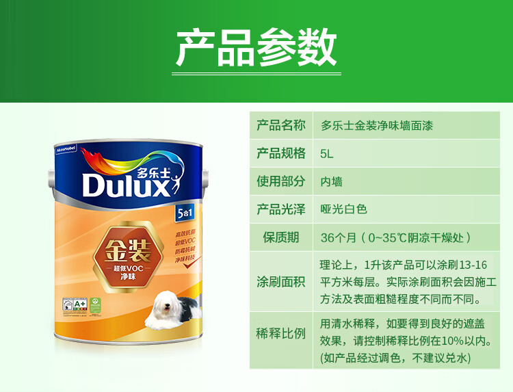 商品名称:☆多乐士 DULUX A997金装净味五合一内墙乳胶漆油漆涂料墙面漆5L