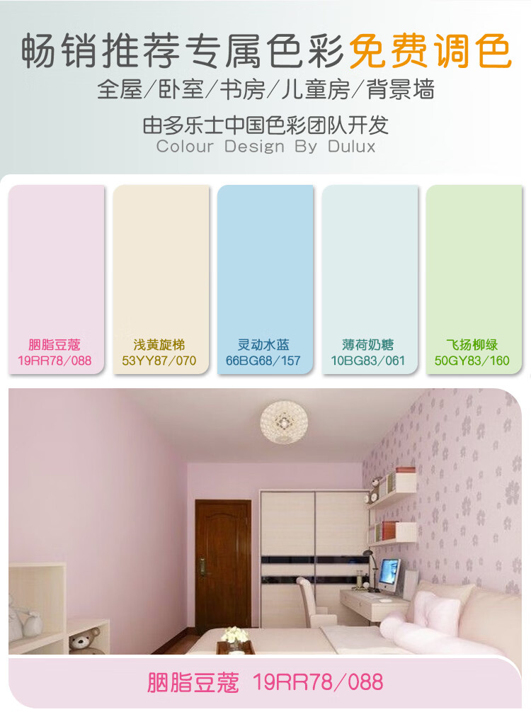 商品名称:☆多乐士 DULUX 彩色乳胶漆调色油漆涂料A663R1超易洗无添加内墙面漆背景墙漆1L色号:胭脂豆蔻