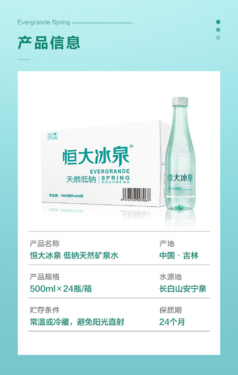 商品名称:☆恒大 冰泉长白山低钠天然矿泉水500ML*24整箱