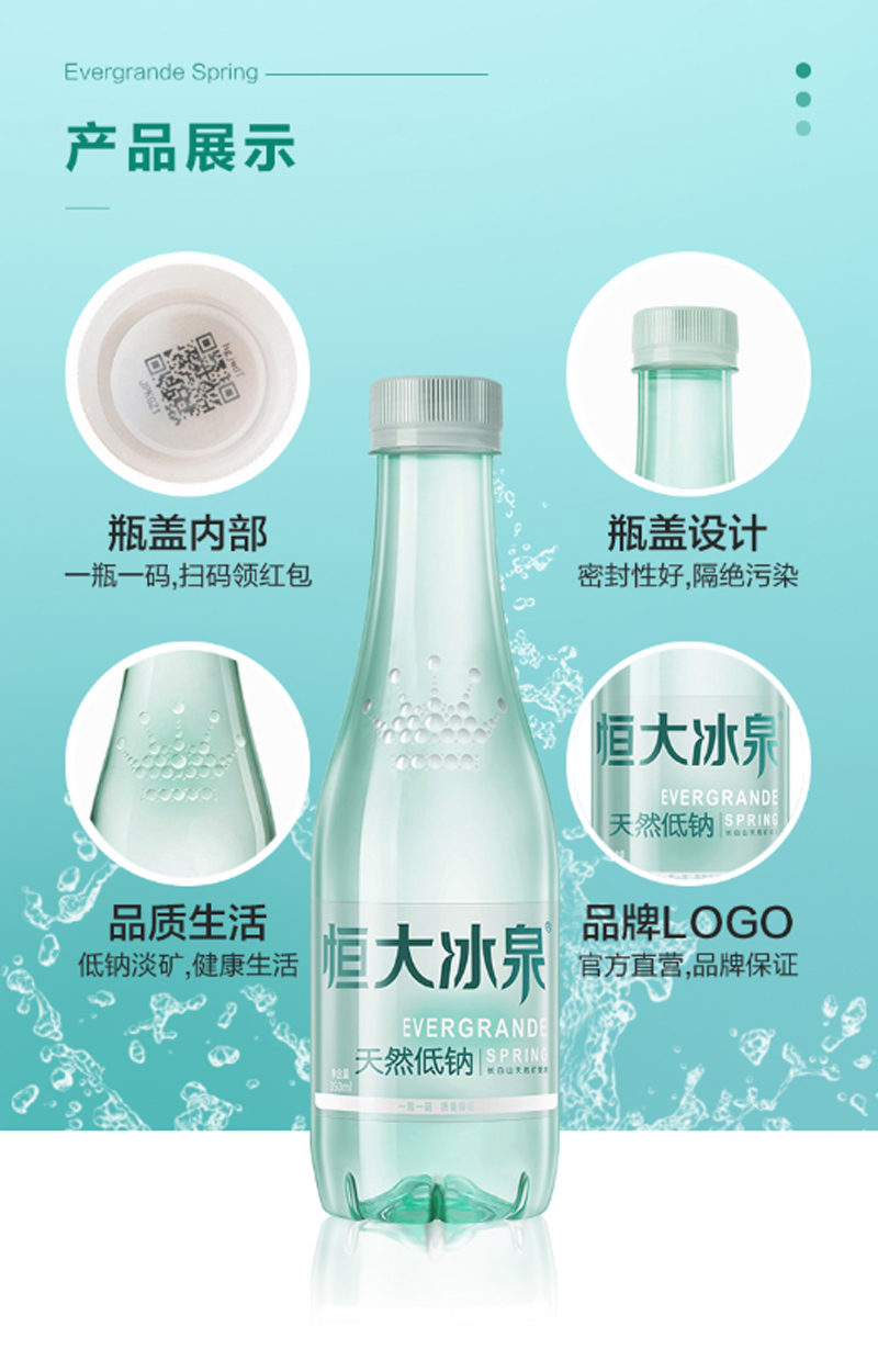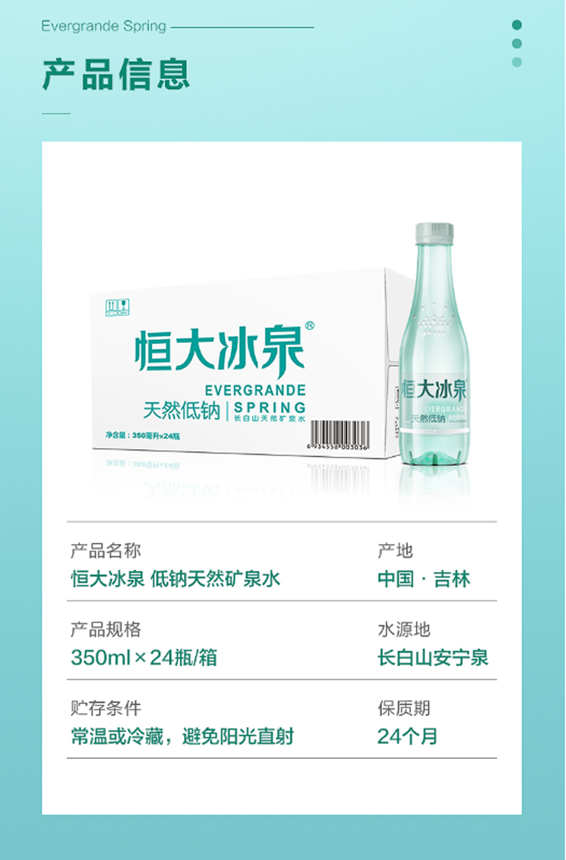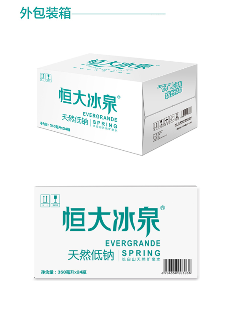 商品名称:☆恒大冰泉 长白山天然弱碱性矿泉水 350ML×24瓶 整箱装