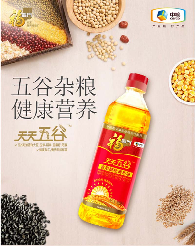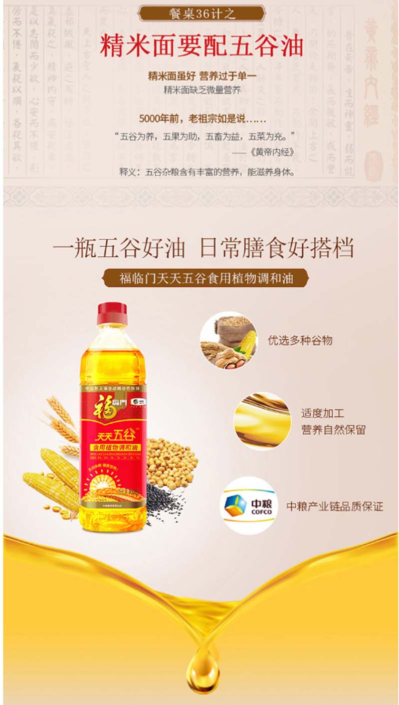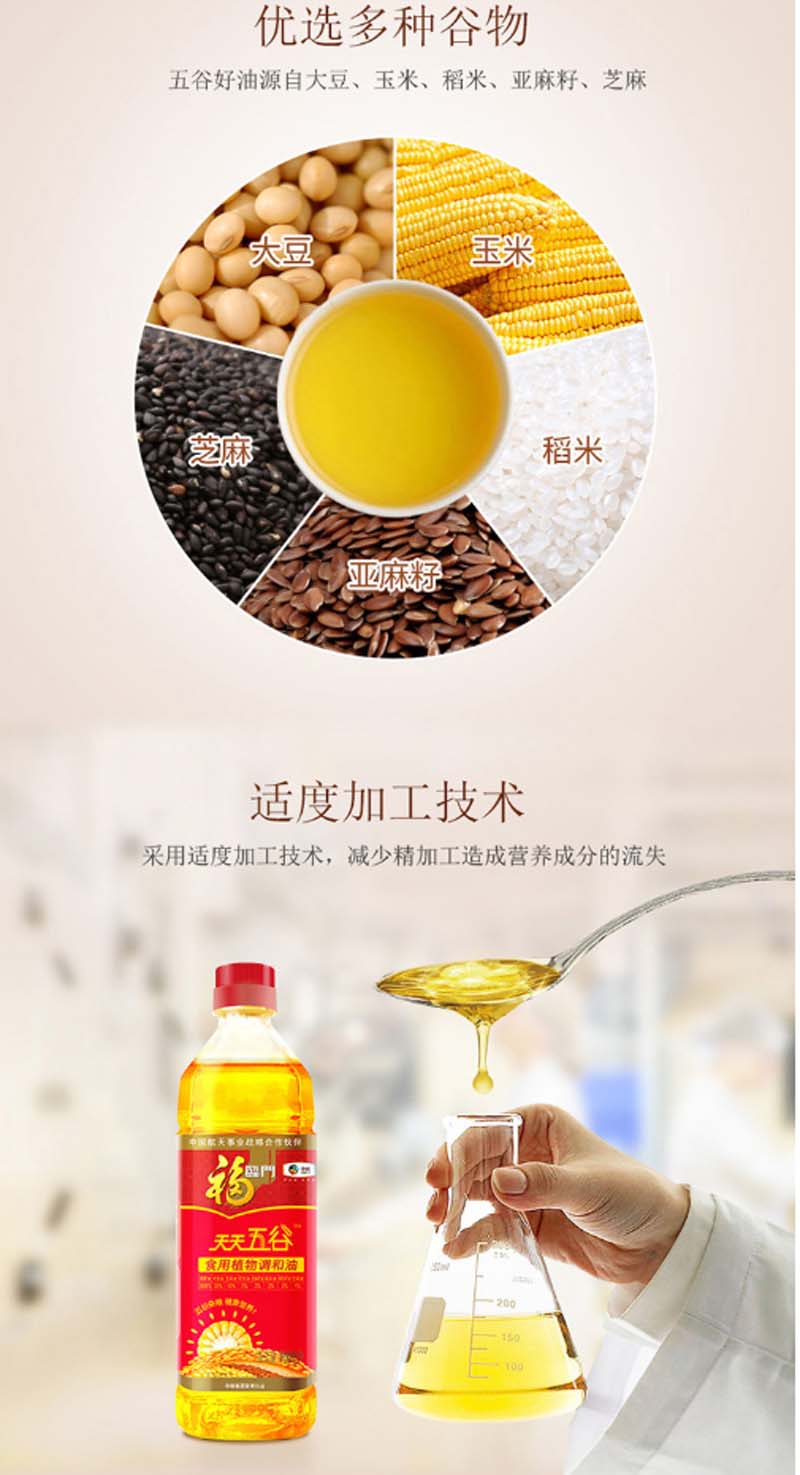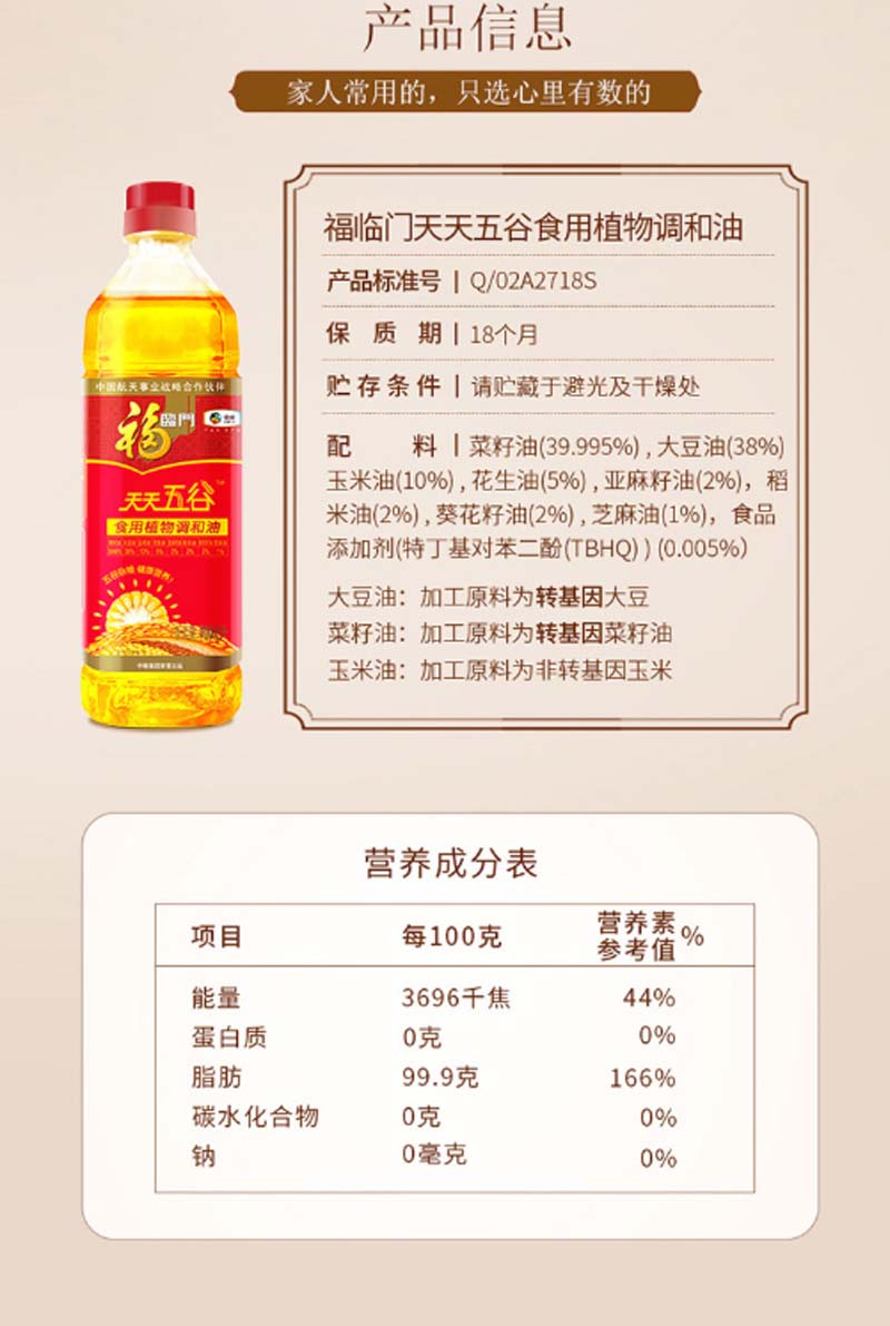 福临门-食用油-天天五谷食用植物调和油-900ml -单位:瓶