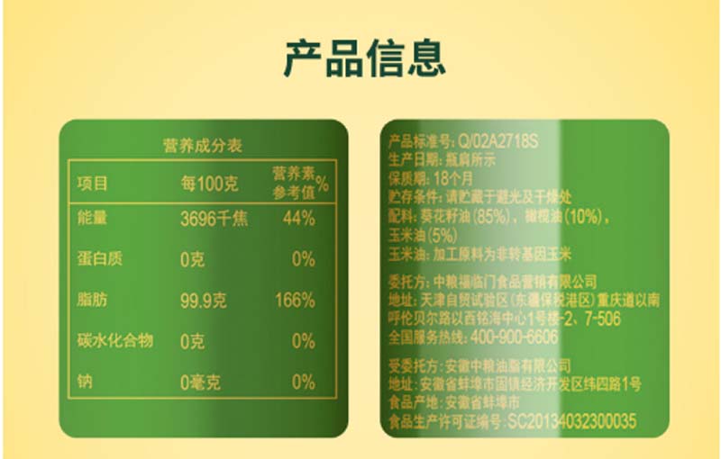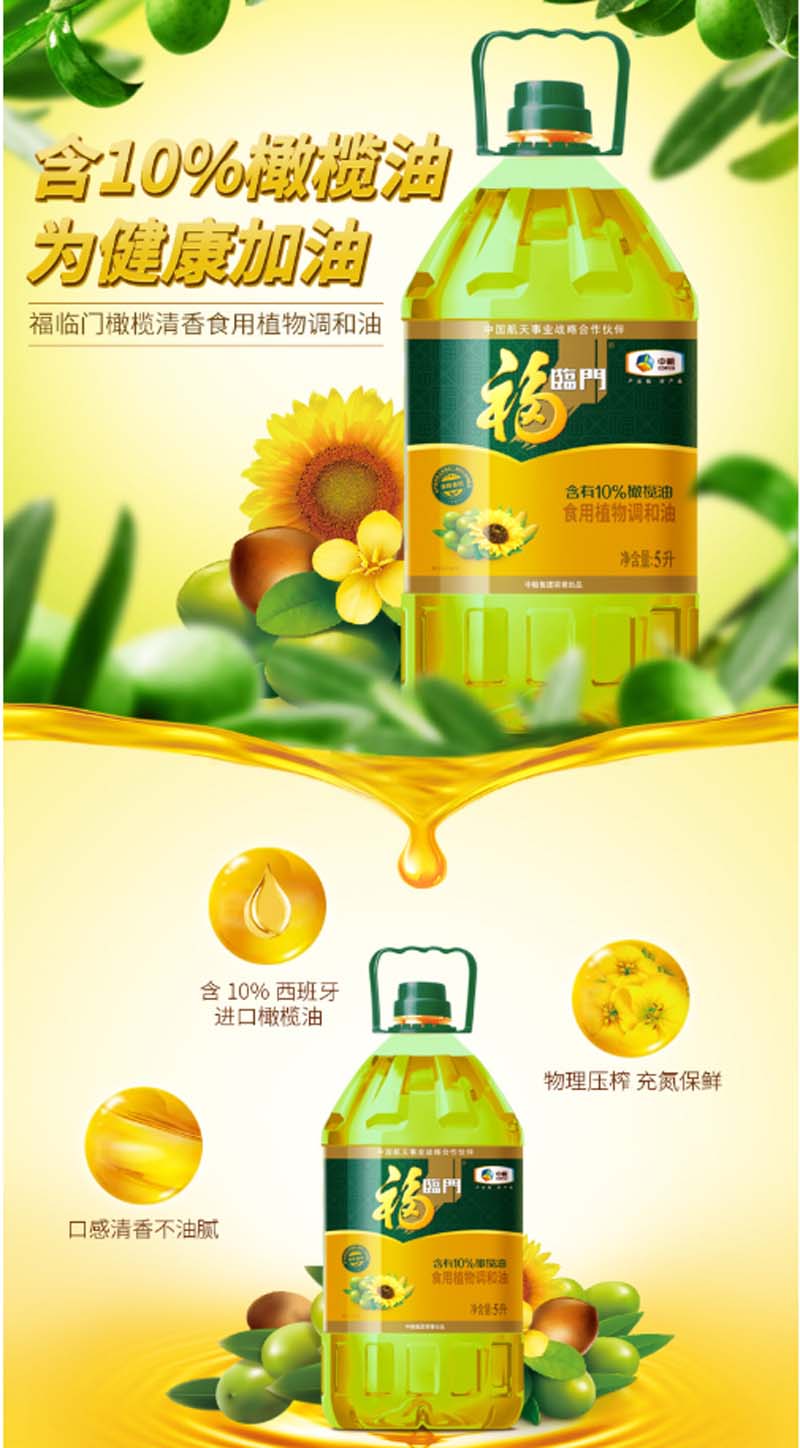 商品名称:福临门-非转基因橄榄清香调和油-5L-单位:桶